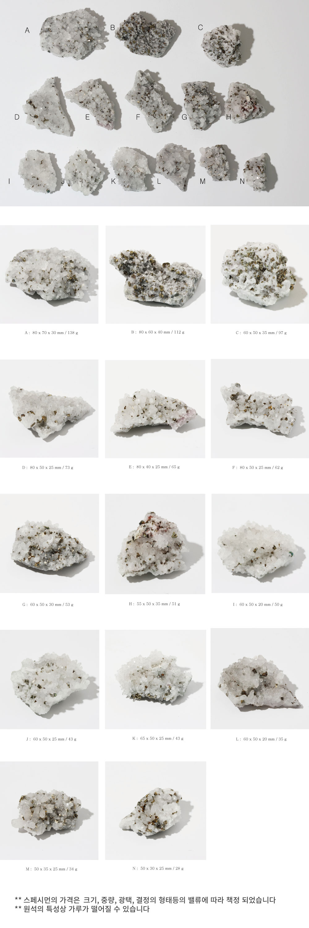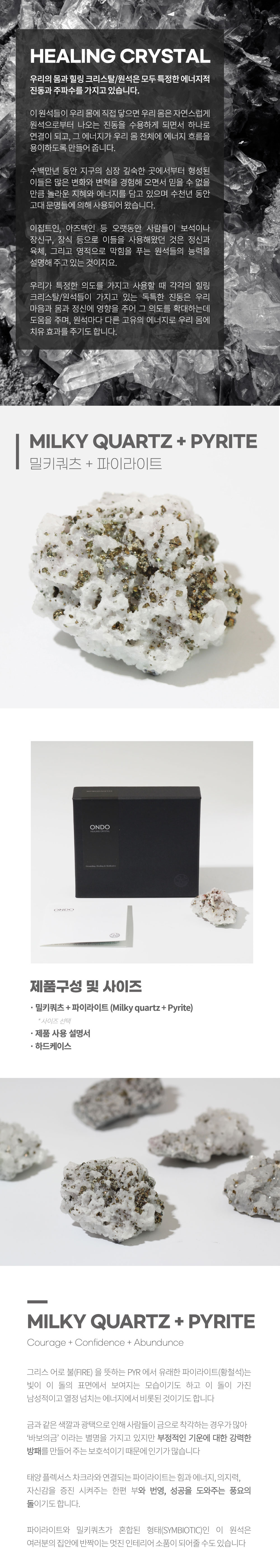 [ONDO] 밀키쿼츠 파이라이트 힐링크리스탈 표본 -  천연원석,오브제, 촬영소품