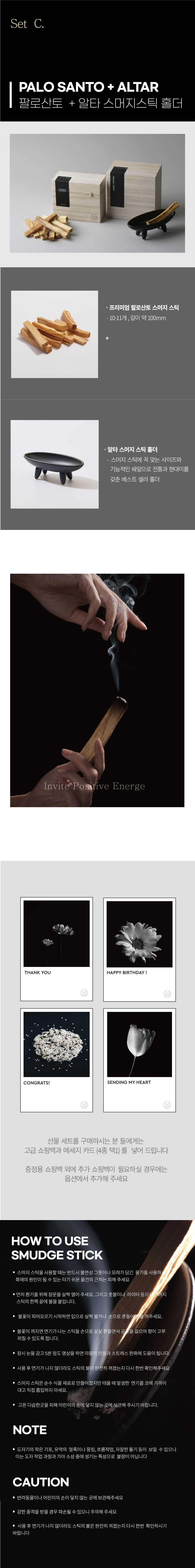 스머지 스틱 기프트 세트 - 천연 인센스 팔로산토  스머지 스틱, 홀더 세트, 쇼핑백 증정